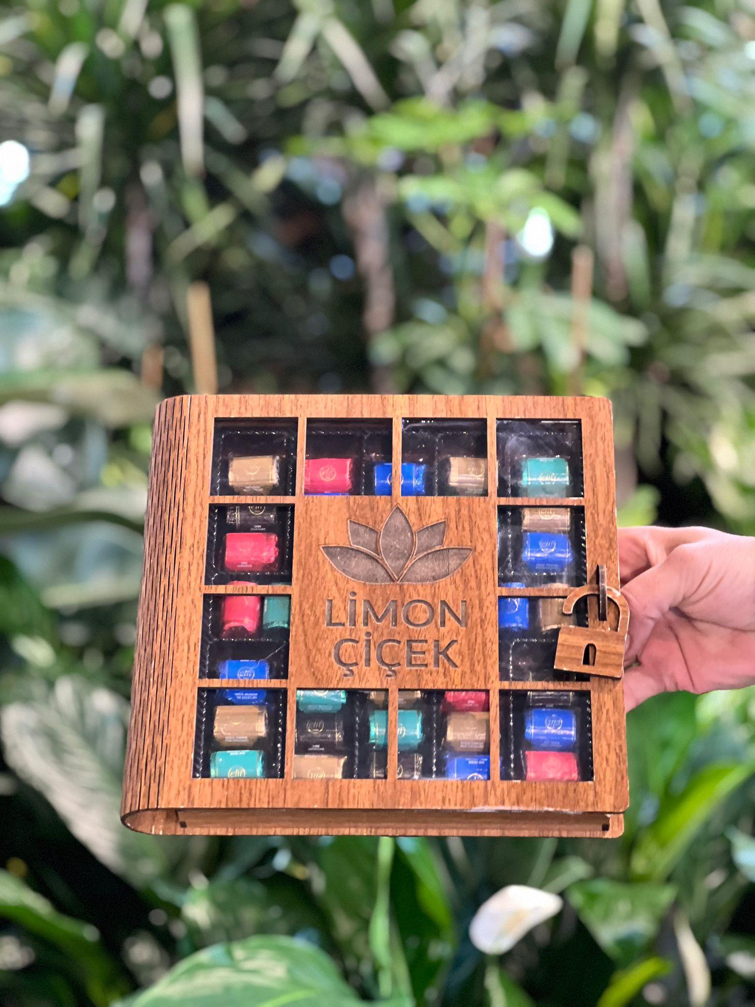 Ahşap Kutu İçerisinde Sargılı Special Karışık ( Bitter- Fındık- Sütlü- Bademli-Fıstıklı) Baton Çikolata