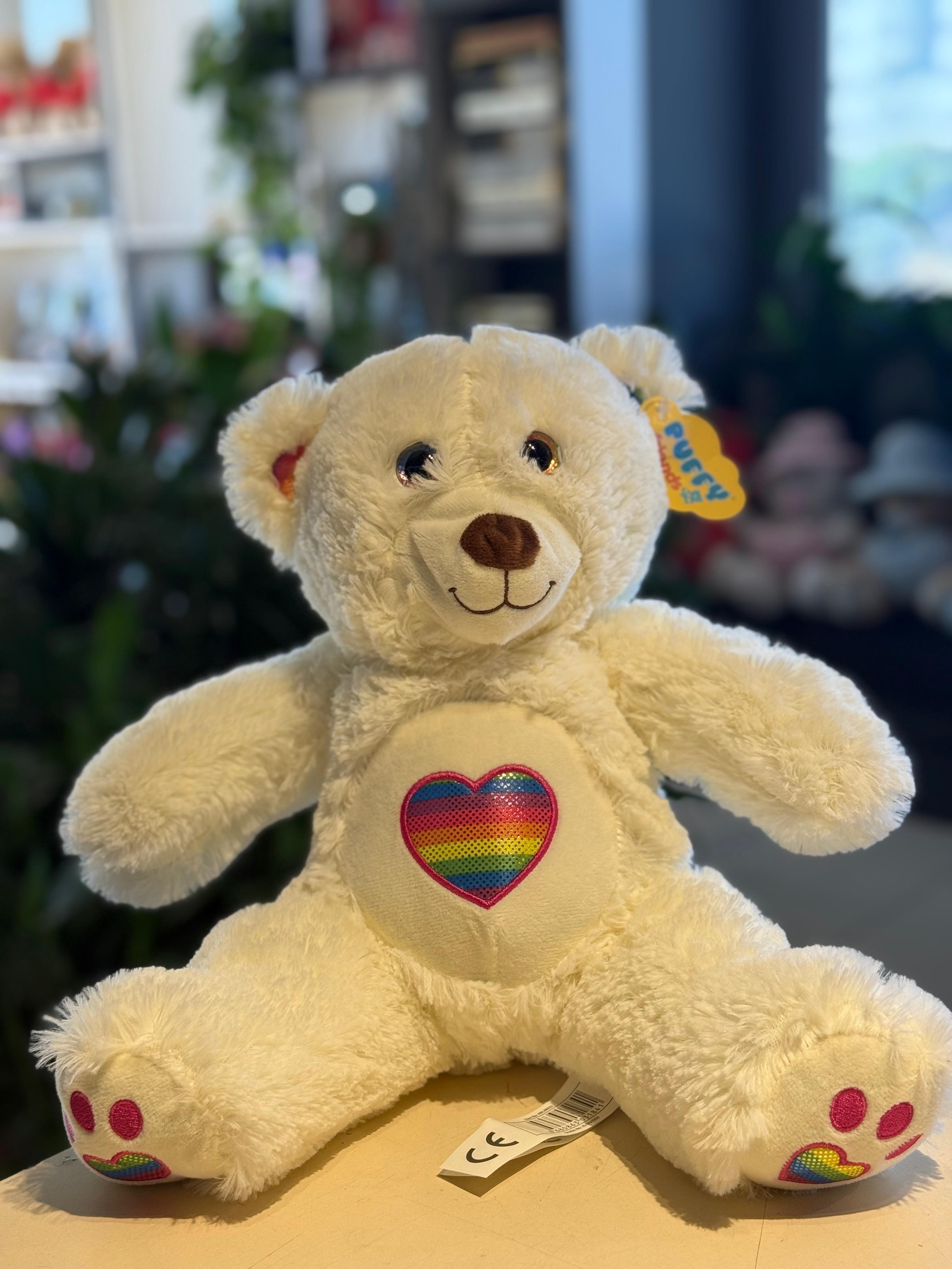 Beyaz Gökkuşağı Kalpli Peluş Ayıcık