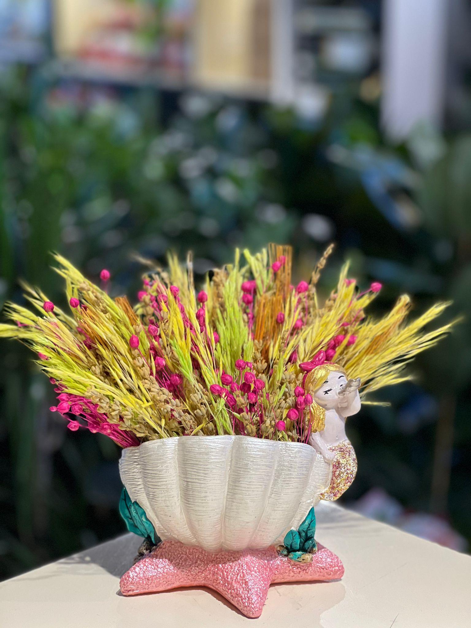Beyaz Pembe Deniz Kızı Seramik Kuru Çiçek (SERAM2502)