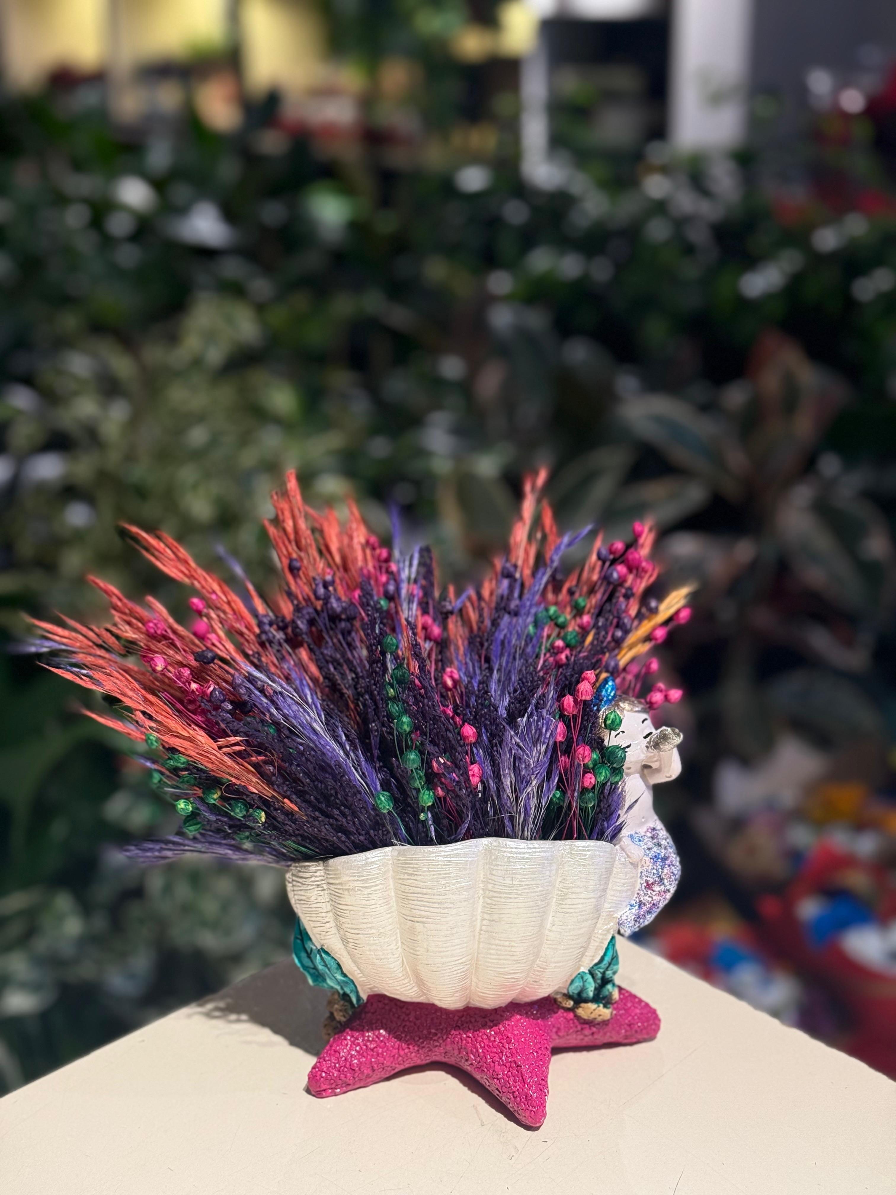 Beyaz Pembe Deniz Kızı Seramik Kuru Çiçek (SERAM2606)