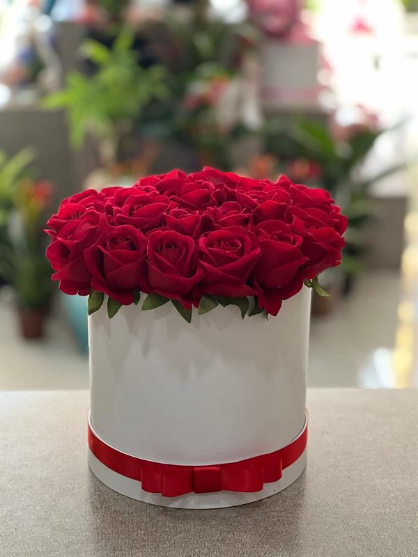 Büyük Boy Beyaz Kutu İçerisinde Yapay Kırmızı Gül (ARANJ0014)