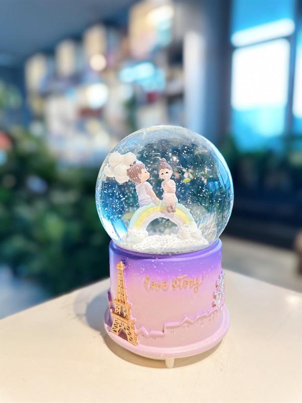 Büyük Boy Motorlu Işıklı Mor Çift Detaylı Kar Küresi (KK0010)