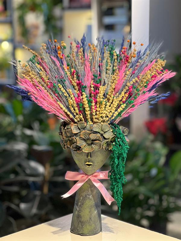 Büyük Çiçekli Yeşil Kız Seramik Kuru Çiçek