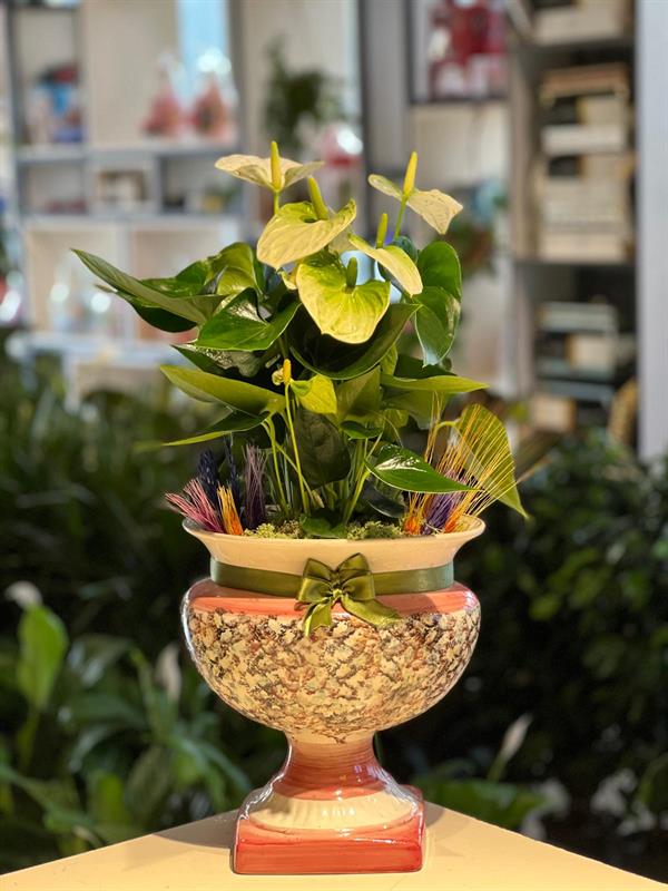 Büyük Renkli Desenli Kupa Seramik İthal Beyaz Antoryum (SERAM2482)