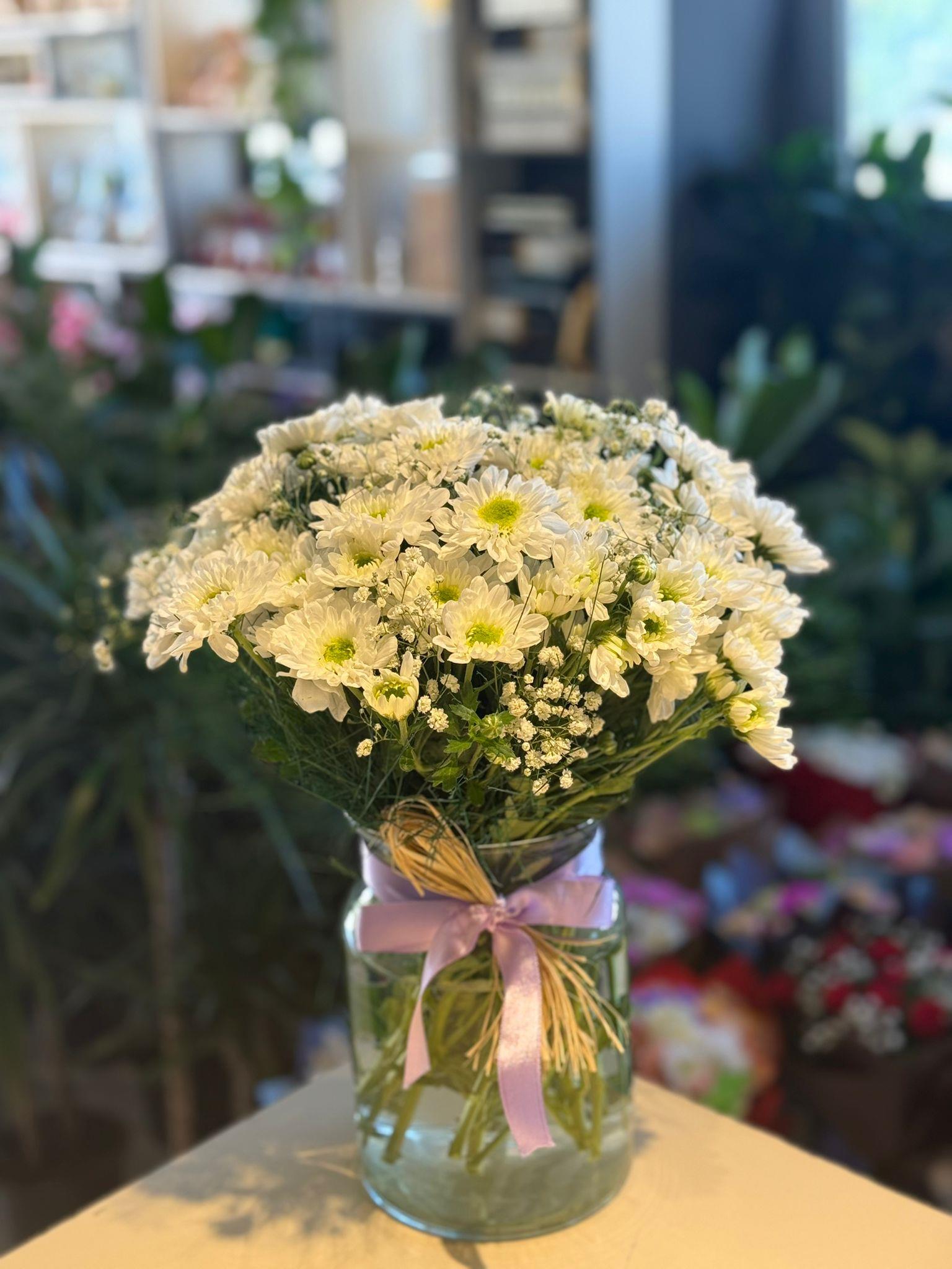 Cam Vazo İçerisinde Beyaz Papatya (ARANJ0012)