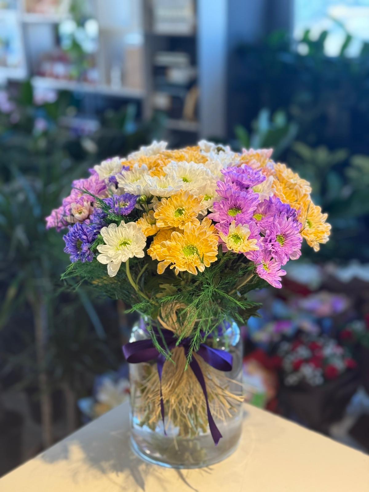 Cam Vazo İçerisinde Karışık Renkli Papatya