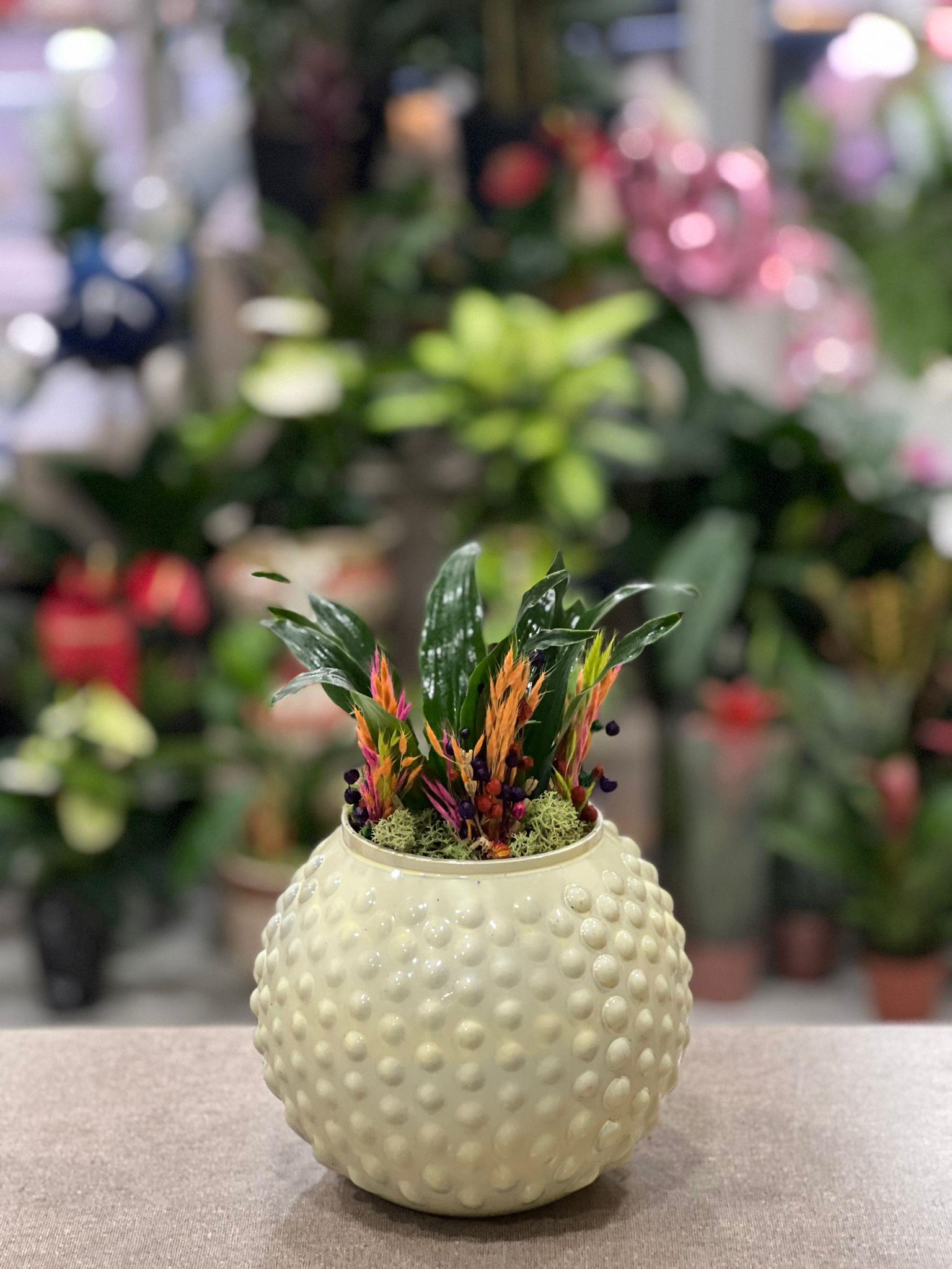 Desenli Seramik Dracaena Compacta ( Top Dresanya ) Çiçeği