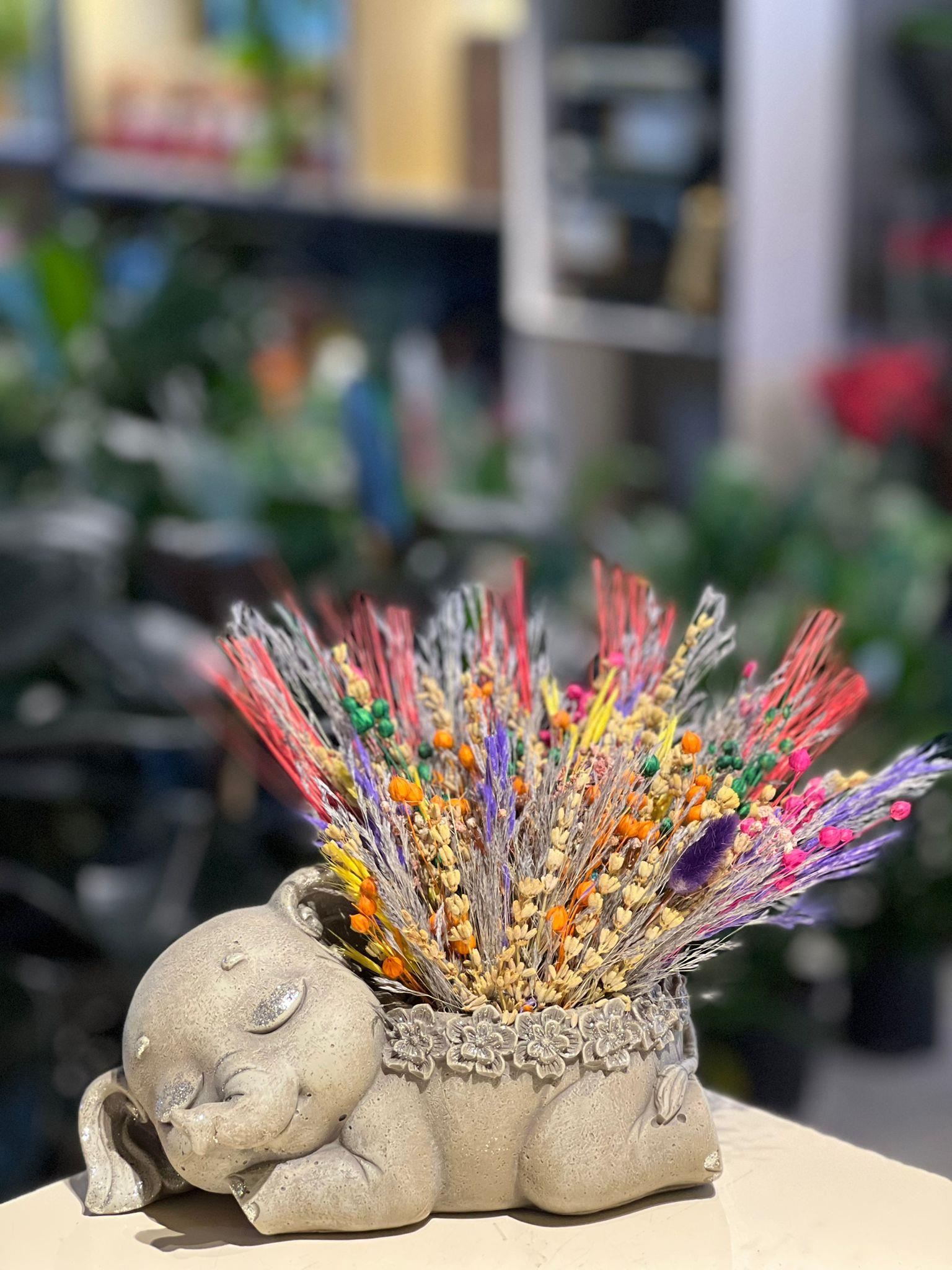 Gri Fil Seramik Kuru Çiçek