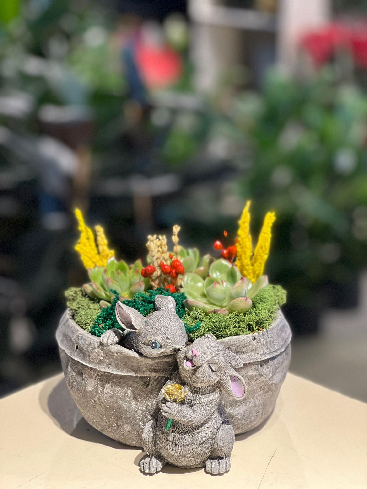 Gri Tavşan Seramik Sukulent Aranjmanı
