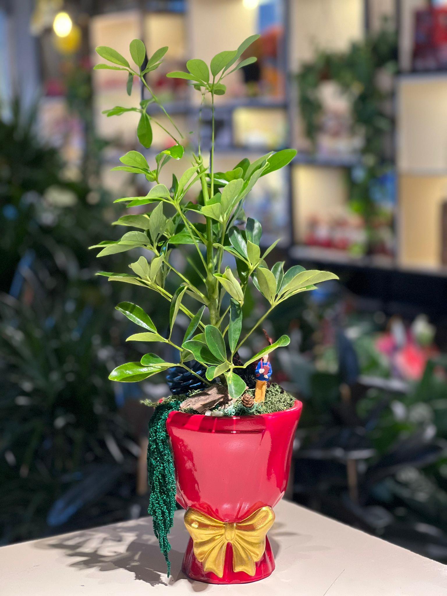 Kırmızı Kurdele Seramik Şeflera (SERAM2557)