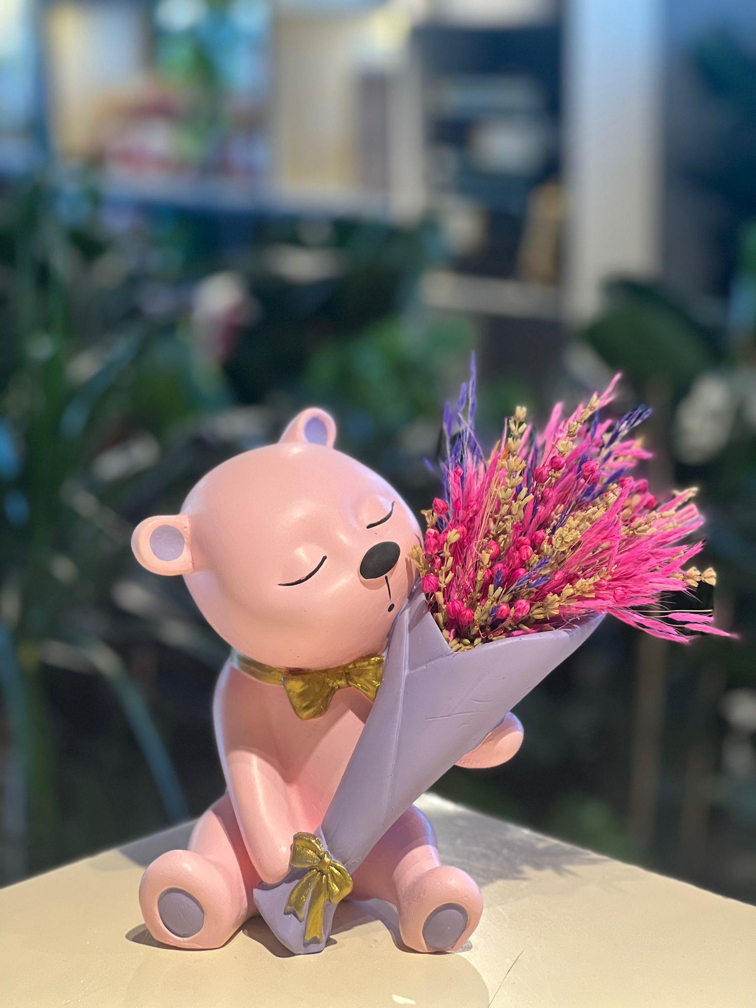 Pembe Mor Panda Seramik Kuru Çiçek (SERAM2514)