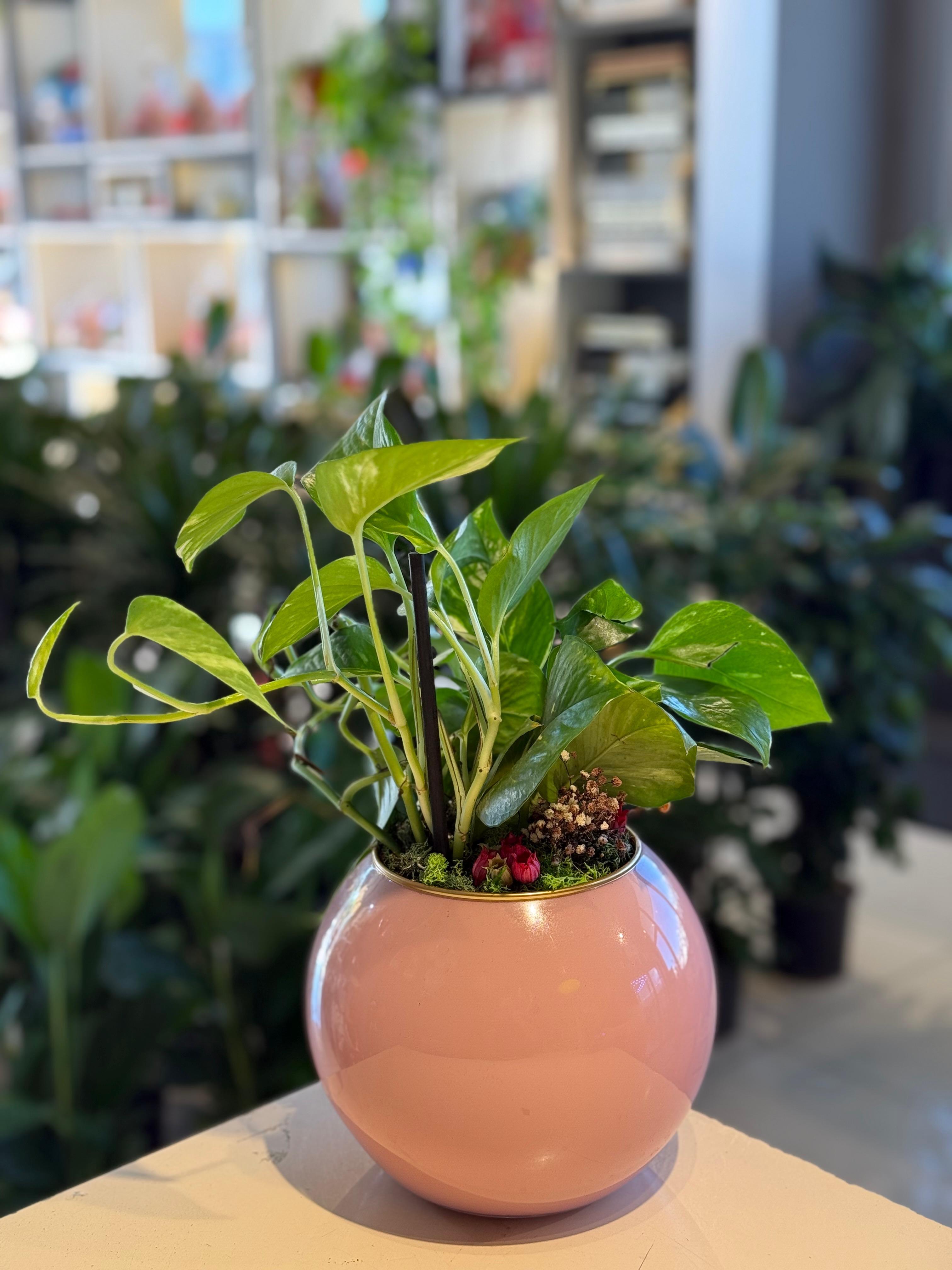 Pembe Yuvarlak Seramik İçerisinde Patos Sarmaşığı