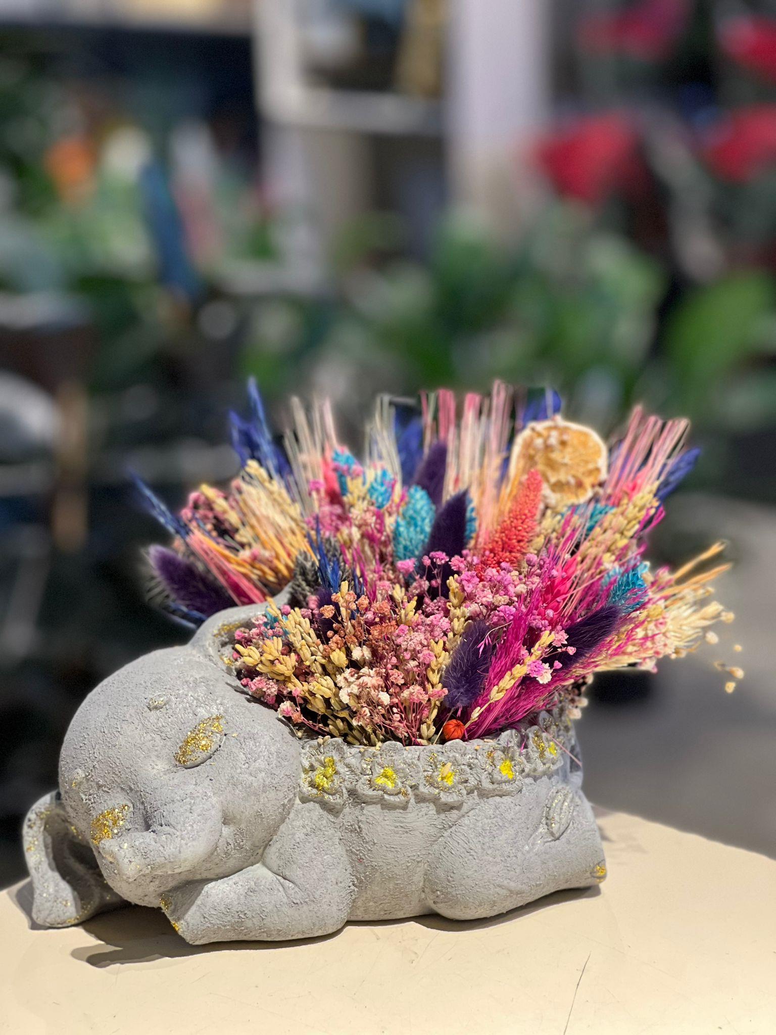 Sarı Çiçekli Fil Seramik Kuru Çiçek