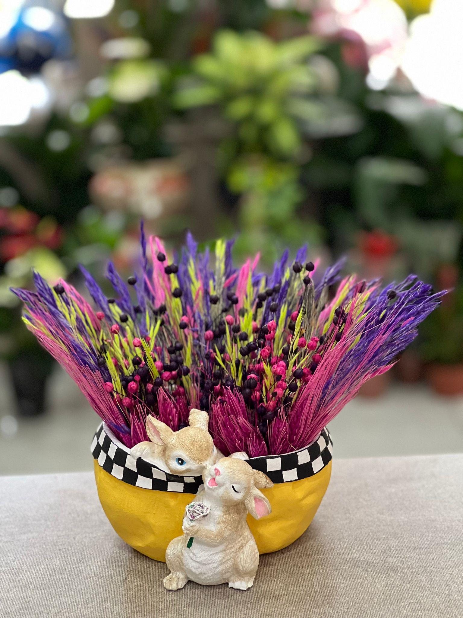 Sarı Tavşan Seramik Kuru Çiçek (SERAM2549)