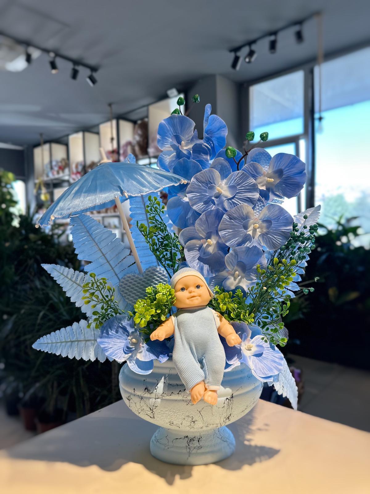 Seramik İçerisinde Yapay Orkide Erkek Bebek