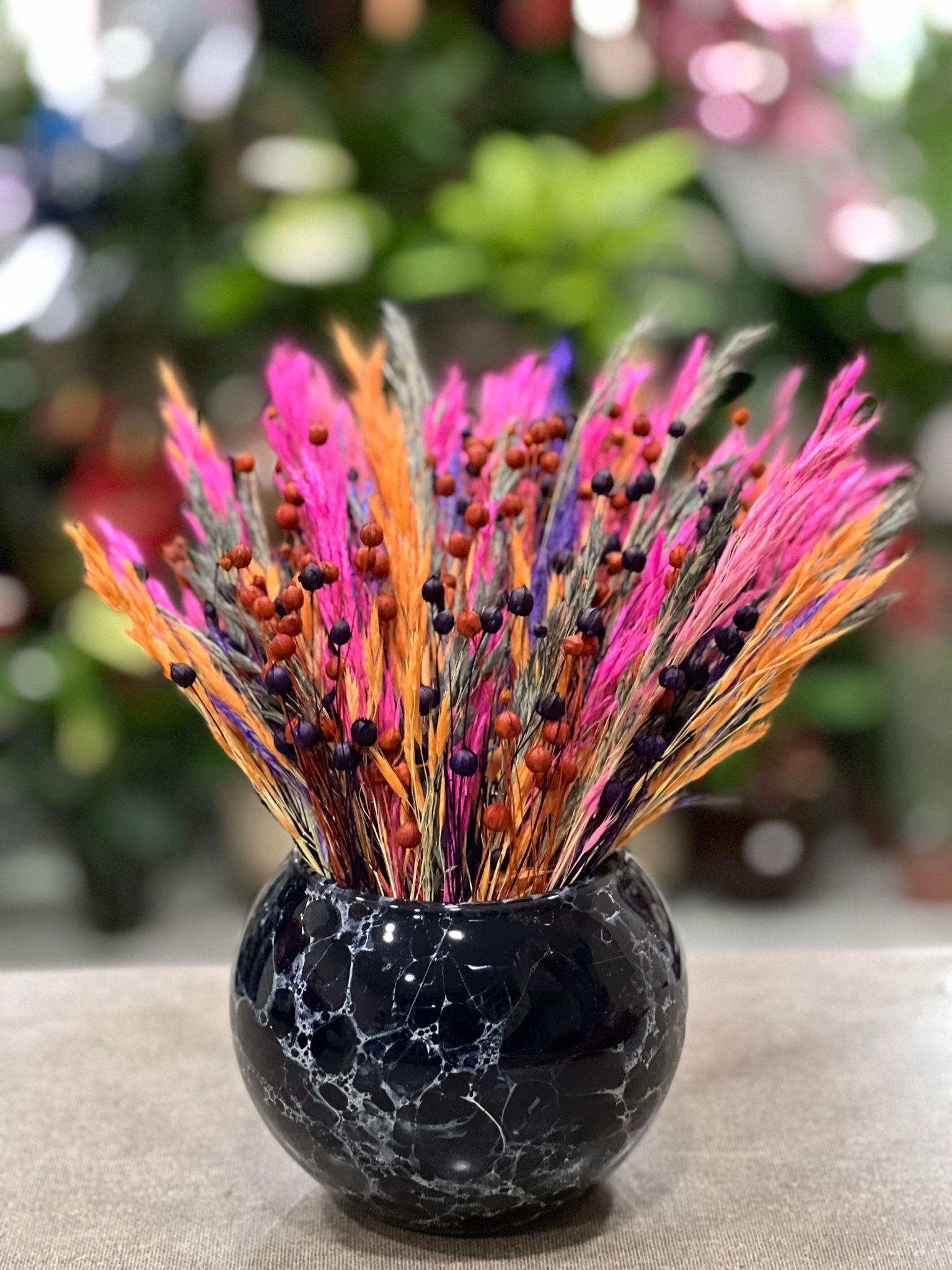 Siyah Desenli Yuvarlak Seramik Kuru Çiçek (SERAM2495)