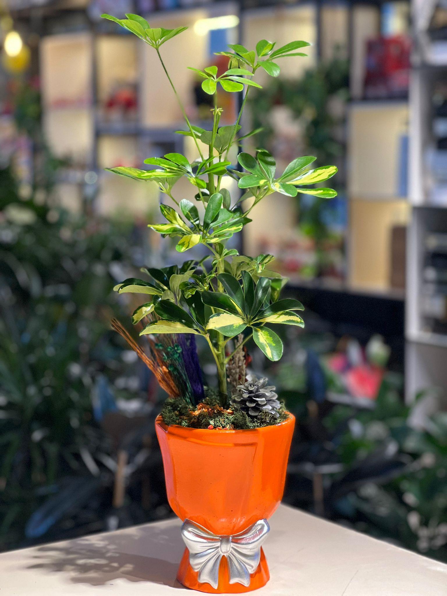 Turuncu Kurdele Seramik Şeflera (SERAM2559)