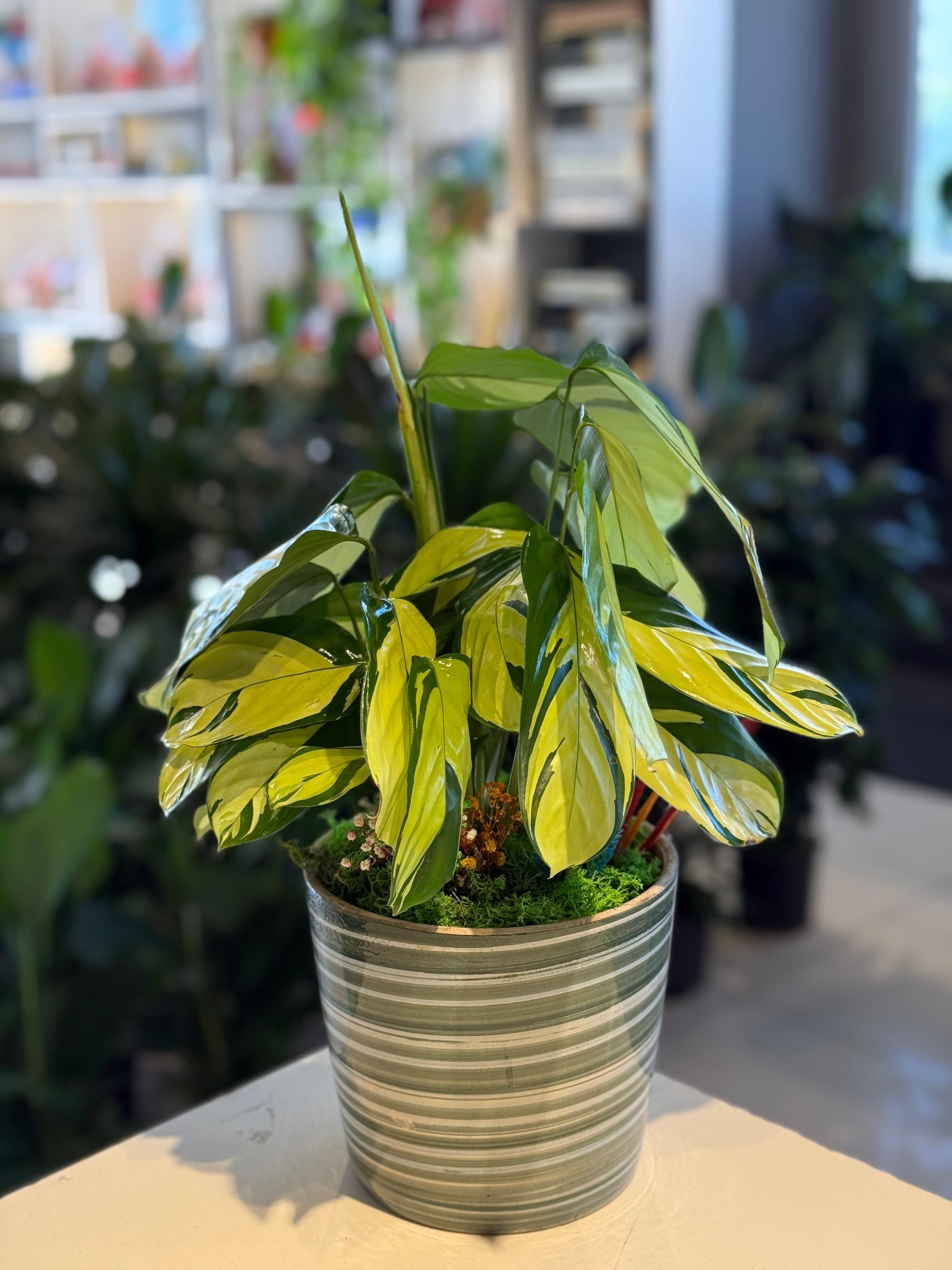 Yeşil Desenli Seramik (Calathea Marantha) Dua Çiçeği