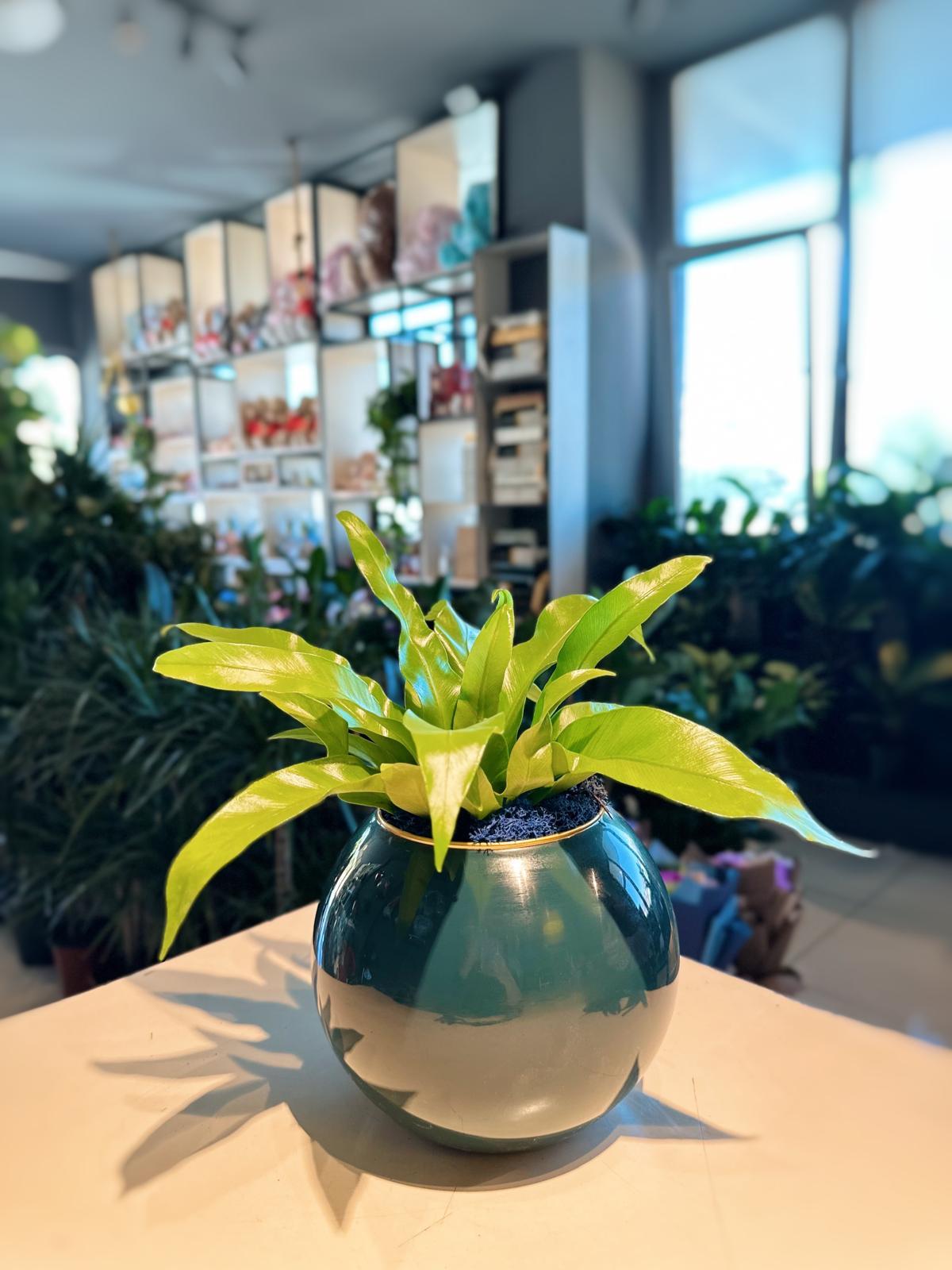 Yeşil Seramik İçerisinde Kuş Yuvası Eğrelti Otu