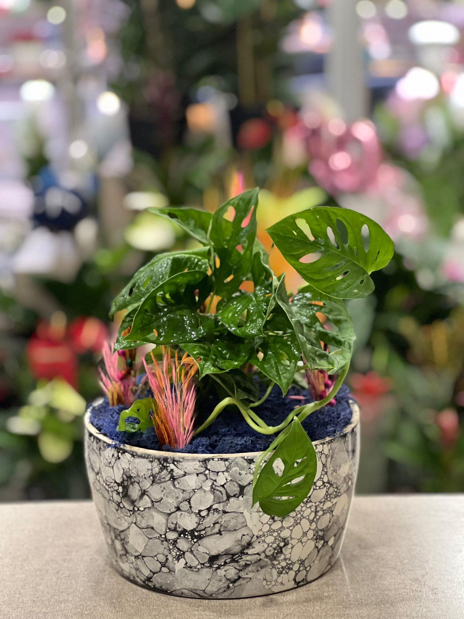 Yuvarlak Desenli Seramik Monstera Çiçeği